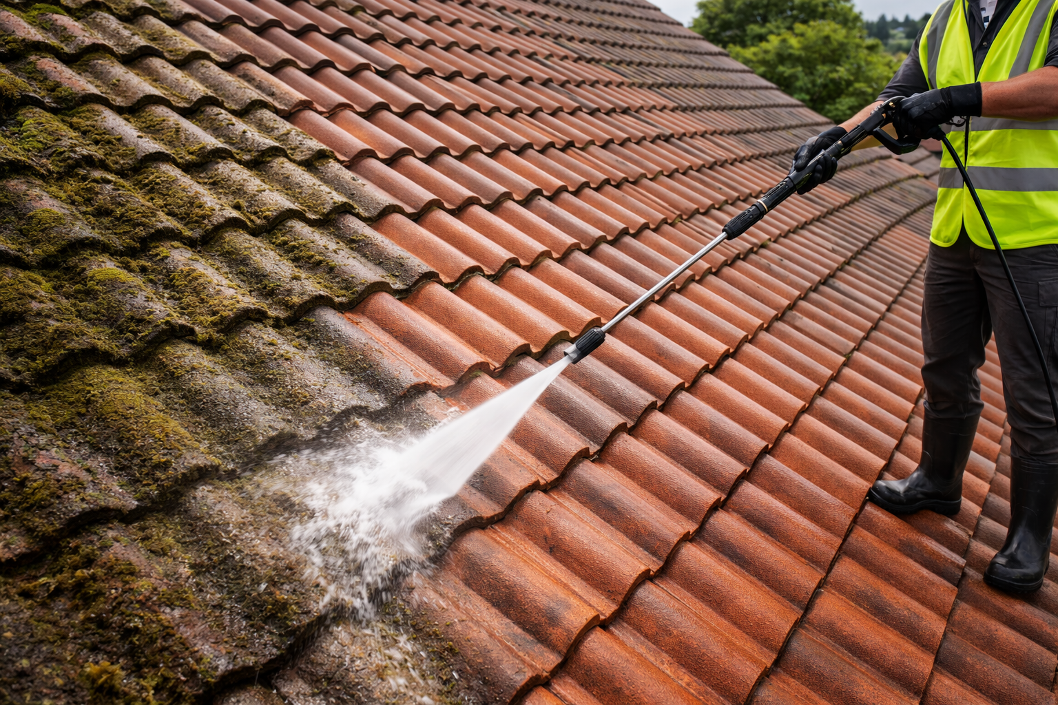 Bring your roof back to life with our professional roof tile jet washing service in Coventry and surrounding areas. Over time, roofs collect moss, algae, lichen, and built-up dirt that not only looks unsightly but can also cause long-term damage if left untreated. We safely and effectively remove this buildup, restoring the natural colour and condition of your tiles.